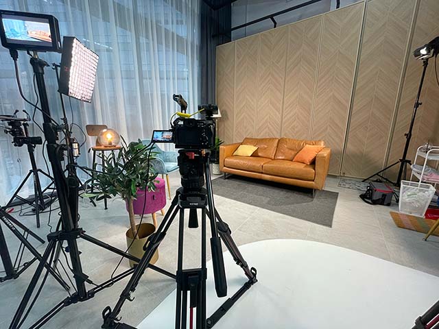 Our feature wall gives a minimal, yet classy look to supplement creative video set designs.