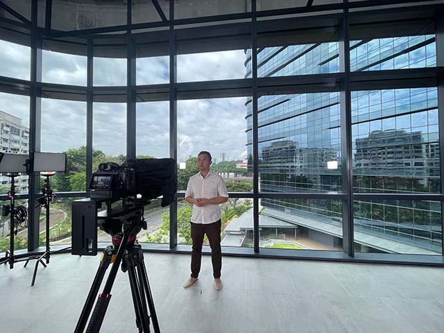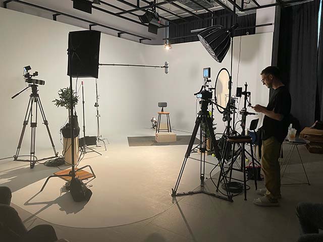 Our cyclorama wall gives you the sense of an infinity space for a very different video look.